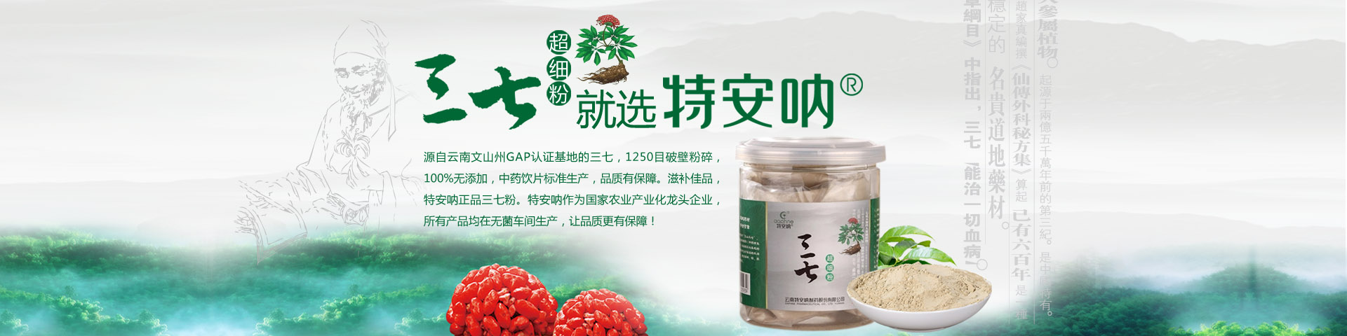 云南特安吶制藥股份有限公司(以下簡稱“公司”)成立于1994年5月。2015年7月,云南省康旅控股集團(tuán)有限公司旗下的云南三七科技有限公司増資擴(kuò)股,公司成為立足文山、專注三七開發(fā)的國有控股企業(yè)。公司成立以來,緊緊依托文山得天獨(dú)厚的三七資源優(yōu)勢,全力打造三七產(chǎn)業(yè)。經(jīng)過近30年的發(fā)展,公司構(gòu)建了以“產(chǎn)品研發(fā)基地、三七GAP種植基地、中藥材加工基地、產(chǎn)品生產(chǎn)基地、物流倉儲基地”和“三七國際交易...